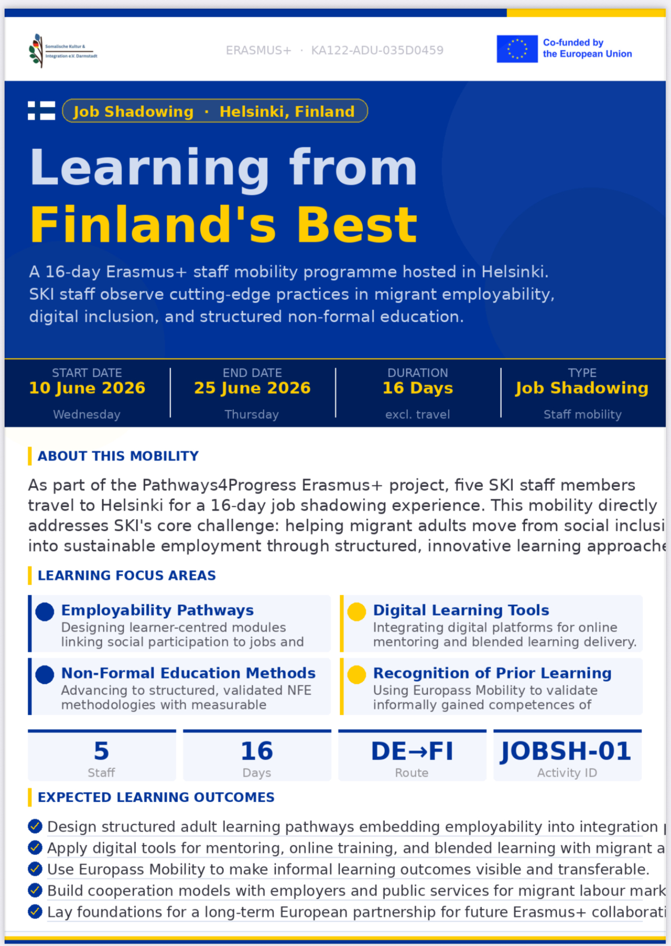 Somali Culture and Integration e.V. was founded in 2009 in Darmstadt, Germany, by Somali citizens who had sought refuge after the civil war and recognized the pressing need for structured support within the diaspora community. The organization was created to respond to the challenges faced by Somali families, particularly children and youth, in navigating the German education system and adapting to a new cultural environment. From its earliest years, SKI positioned itself as both a community anchor and a catalyst for integration, providing safe spaces, guidance, and opportunities for empowerment.
